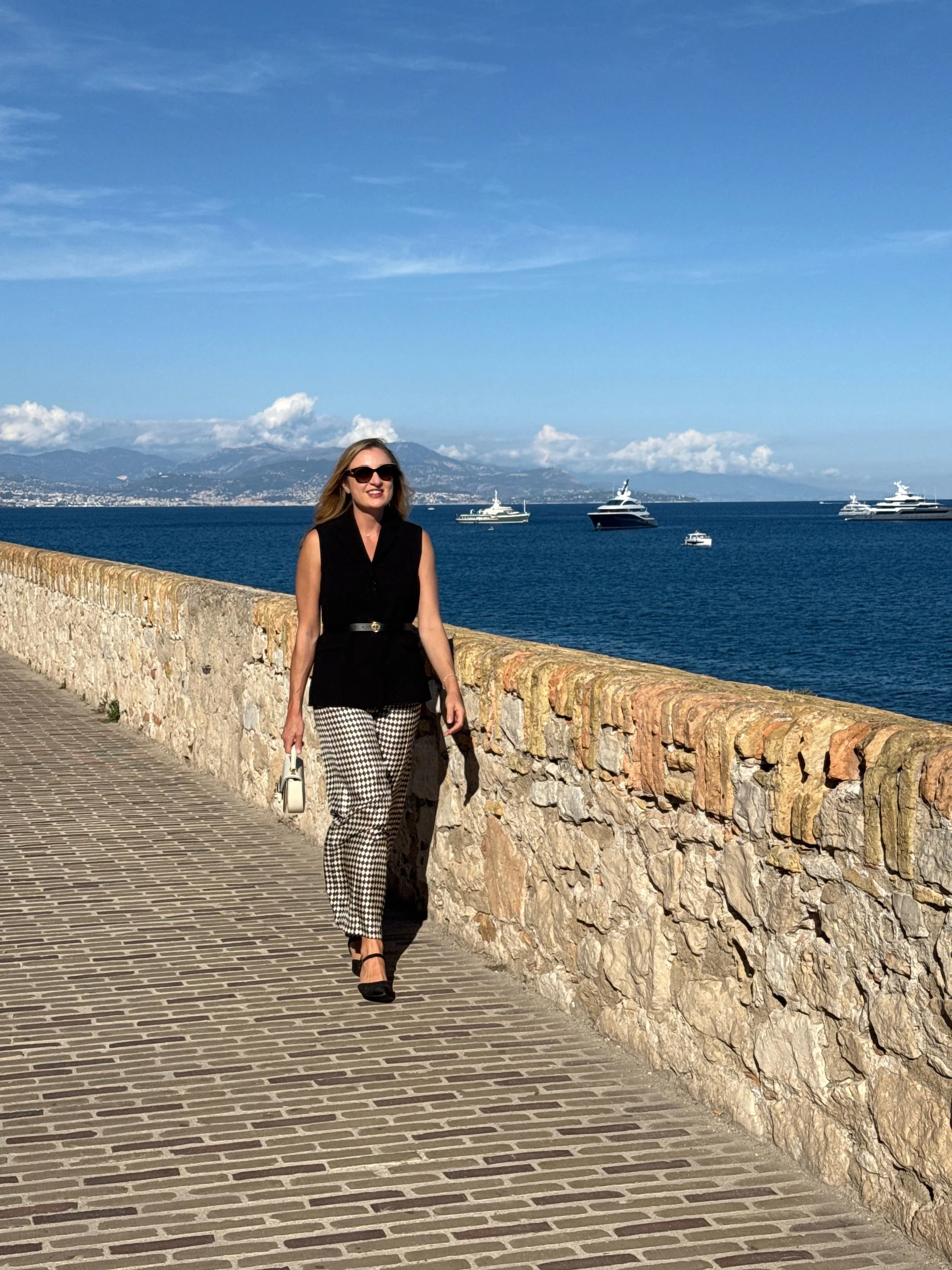 As I mentioned earlier, Nivaldo has really pushed me to add different pieces to my wardrobe, and I am so happy I trusted him! I purchased these silk trousers that I paired with this new vest that I wore on our Atlas Adventures trip to the South of France (shown above). I cinched the waist with a belt (similar one here) and a pair of black slingbacks (similar here). I also wore this white knit midi dress that I got so many compliments on (shown above)!