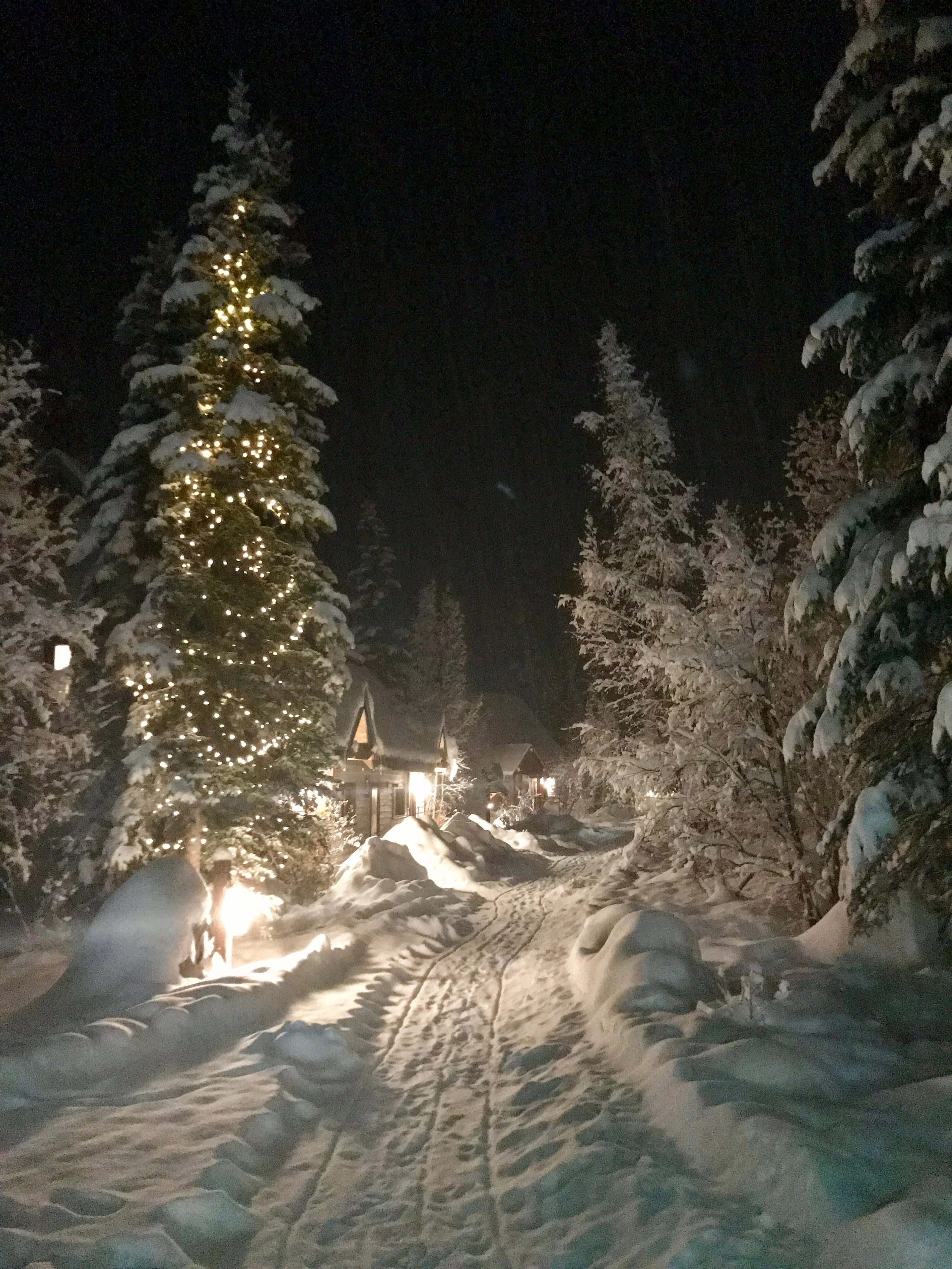 This cozy lodge is tucked away in Yoho National Park (about 2.5 hours from YYC) and is the epitome of magical. It set the bar so high for the rest of our trip because right off the bat we felt like we were living in a whimsical snow globe! There was fresh powder everywhere and barely any people around. The lodge itself offers century-old fireplaces and an oak bar salvaged from the 1890's. The rooms are housed in separate cozy cabins while the reception and dining areas are together in a separate lodge (this is the only area of the property that has wi-fi). Haley and I had some work to do when we arrived, so we cozied up by the window in the lodge to watch the snow fall, eat some lunch and do some work. That slowly turned into spending our entire afternoon and evening chatting with the staff, ordering multiple rounds of drinks and becoming buddies with them by the fireplace until finally, we braved the cold (and large amounts of snowfall that had accrued) to venture back to our cabin. It truly looked like a winter wonderland with the twinkling lights reflecting on the snow- no photo could properly do it justice.